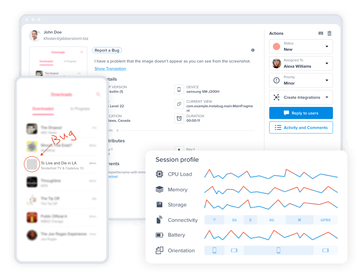 Capture all your app's sessions and watch visual replays to see through your users' eyes. Instabug captures a series of screenshots along with all the events, actions, logs, and more, allowing you to quickly understand the issue, what's causing it, and how to fix it without wasting your time on needless back-and-forth questions. Additionally, you can ensure user privacy out of the box with customizable levels of auto-masking to protect sensitive information.