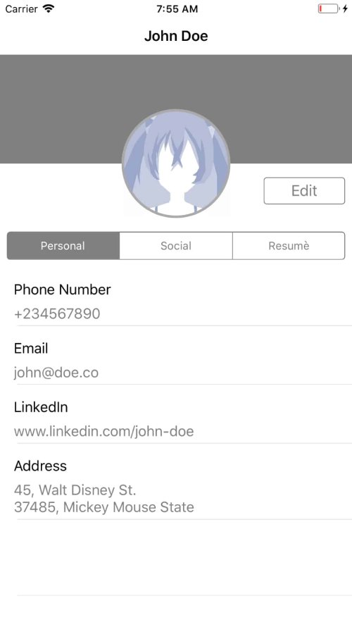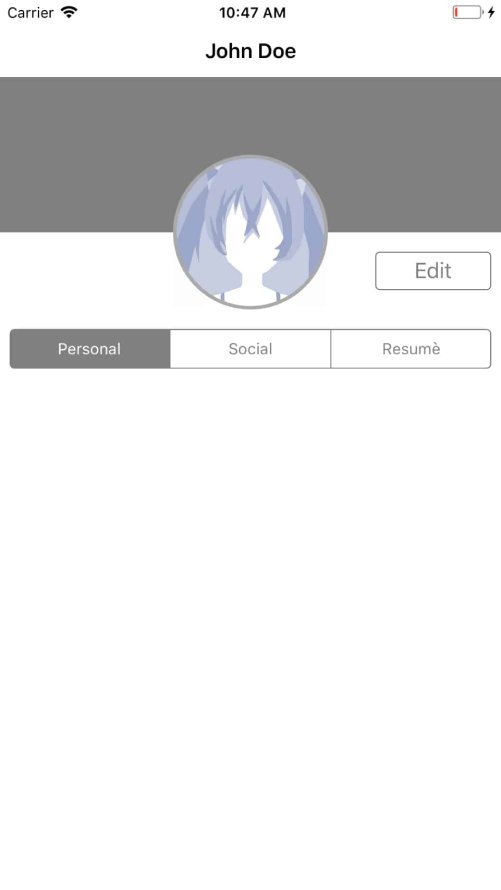 You can also add this line self.title = "John Doe" in viewDidLoad. This will add the word “Profile” to the navigation bar so the user knows where they currently stand. Go ahead and do this before running the application and the result should look like this: