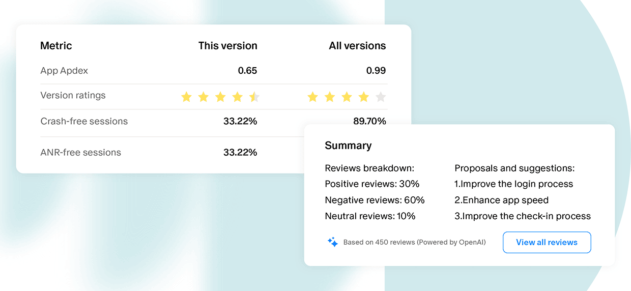 Master your app ratings and debug your way to five-star reviews. Link app reviews to the exact user session, giving your team the power to debug the issue and quickly resolve the root cause.
